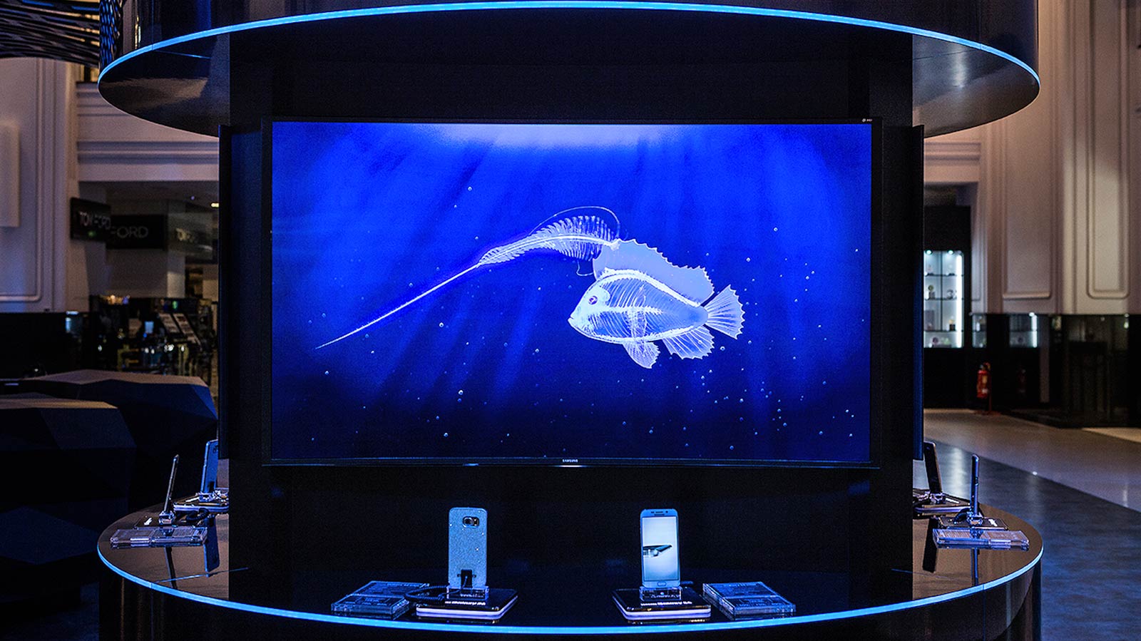 Focus4 got in touch to create deep sea visuals for several high resolution elements for the Samsung Innovating Evolution Exhibition in the KaDeWe in Berlin.